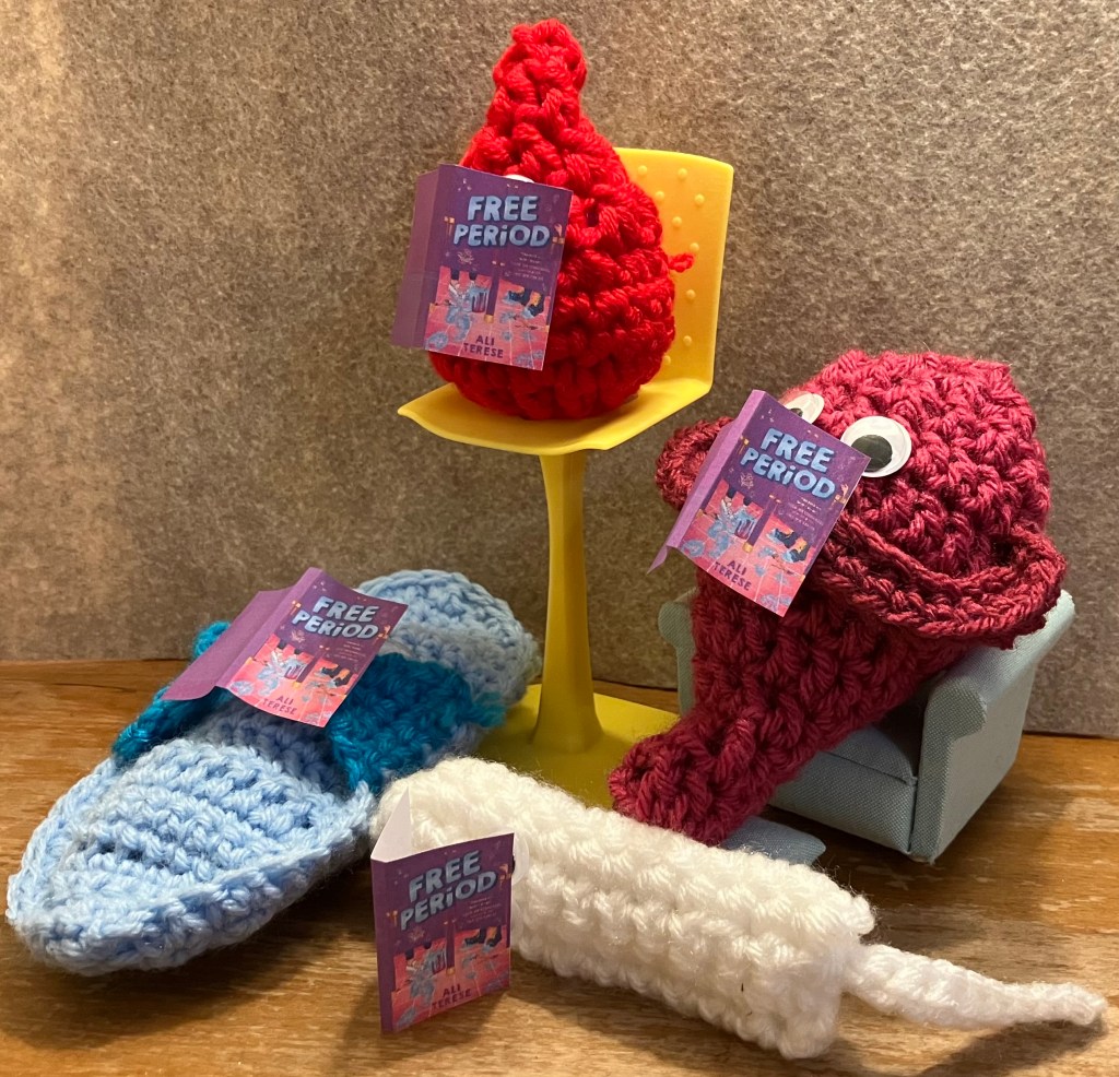 Free Period is a middle grade story of friendship and period equity where a couple of chaos monsters fight for maxipads in school bathrooms for all students who menstruate. It is full of bestie banter, wildly weird crafts like Crochet Cuterus Uteruses, and delightfully disgusting desserts like Maxi-Grahams and Tampretzels.